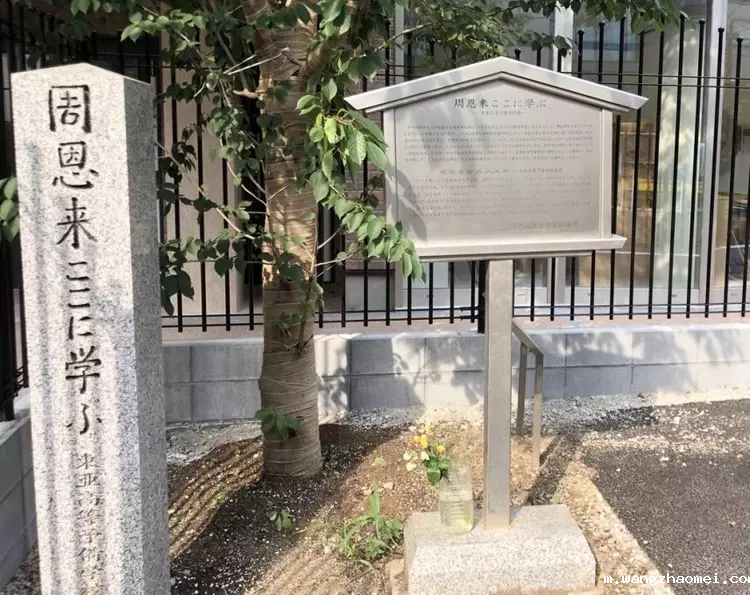 一行人参观了神田神保町的爱全公园。这里是东亚高等预备学校的旧址,当年19岁的周恩来在这里学习日语,为大学考试做准备。公园内一块刻有“周恩来此处学习”的石碑,让人们对青年时代的周恩来,及其在东京的生活有更直观的了解。